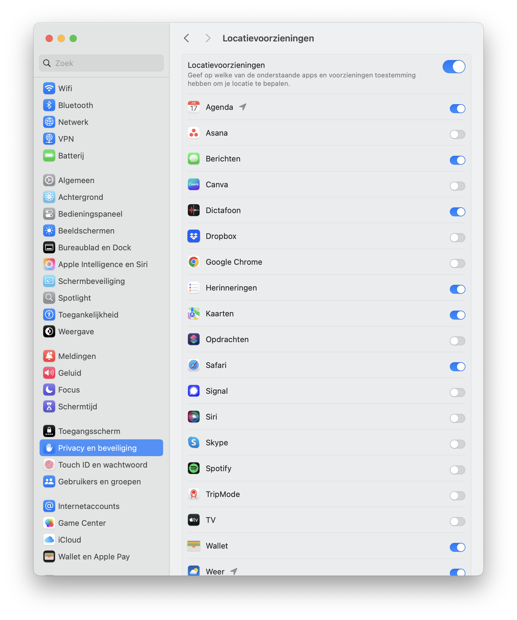 Op de Mac vind je deze instellingen bij Systeeminstellingen > Privacy en beveiliging. Je ziet direct welke apps toegang hebben tot je locatie, contacten, agenda’s etc. Op de iPhone en iPad vind je dezelfde mogelijkheden bij Instellingen > Privacy en beveiliging.